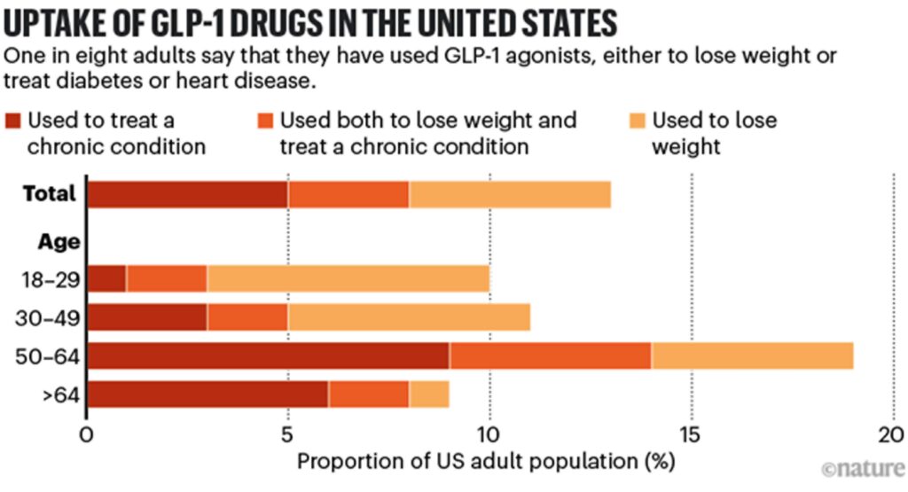 Cecchini says that the OECD plans to release a report on GLP-1s’ economic impacts next year. His group has previously looked at the effects of obesity on factors such as education, workforce participation and health-care spending. Even climate change is affected when obesity rates rise. Carbon dioxide levels from food manufacturing rise to meet increased demand — particularly with red-meat production — and vehicles have greater emissions owing to heavier loads4.