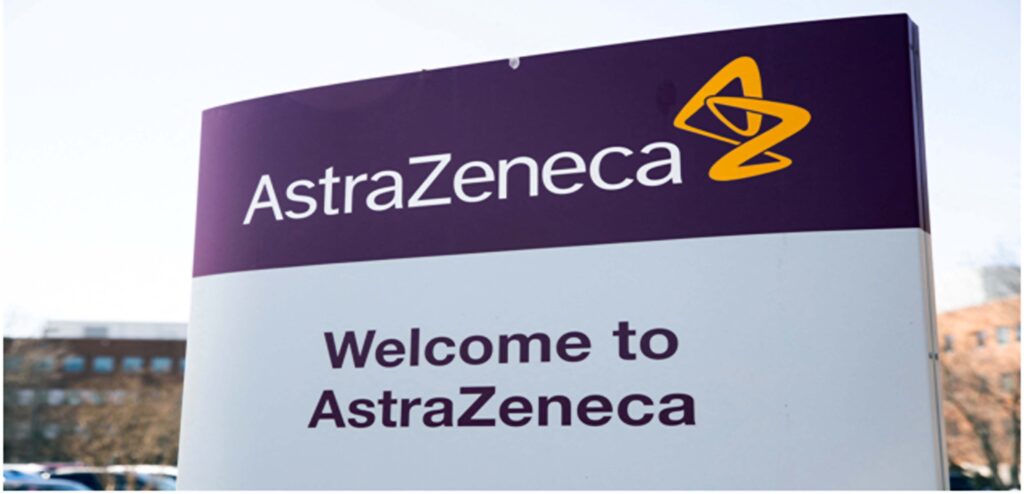 The logo for AstraZeneca is seen outside its North America headquarters in Wilmington, Delaware, U.S., March 22, 2021. REUTERS/Rachel Wisniewski/File Photo