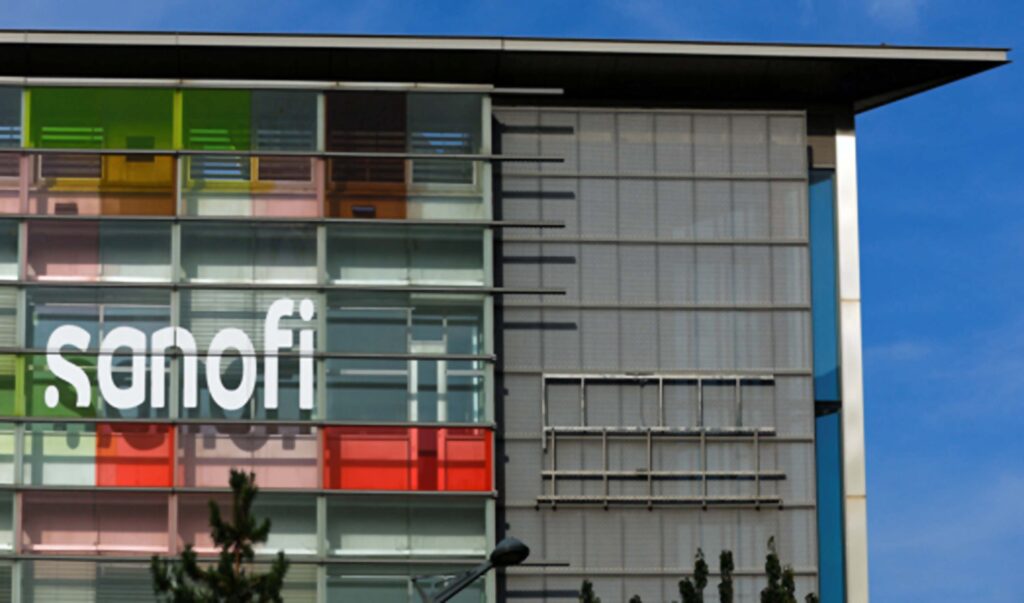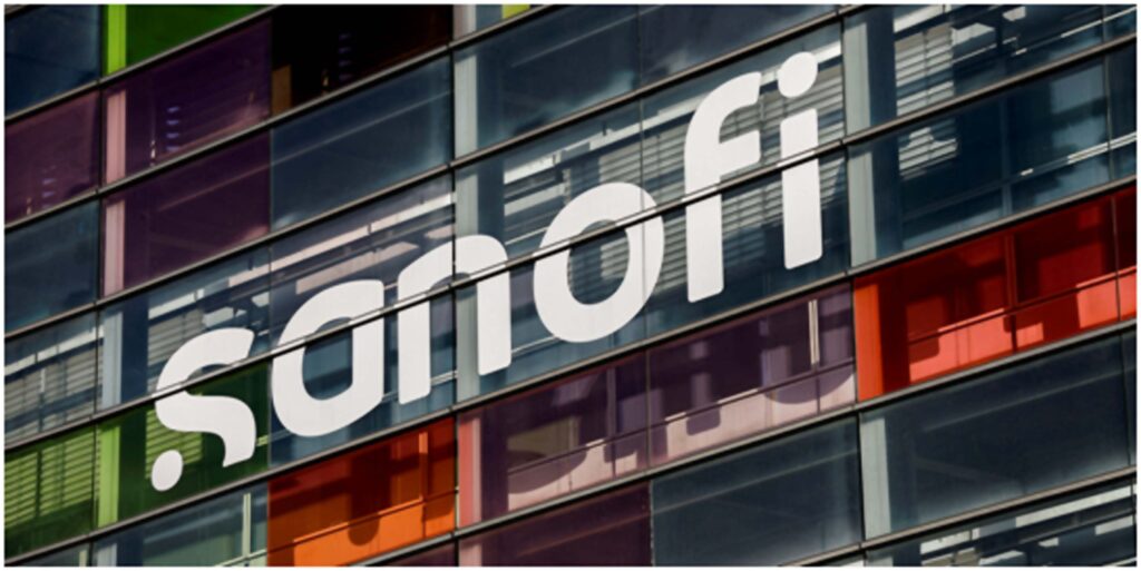 The logo of French drugmaker Sanofi is seen a the Sanofi Genzyme Polyclonals in Lyon, France, September 30, 2023. REUTERS/Gonzalo Fuentes/File Photo