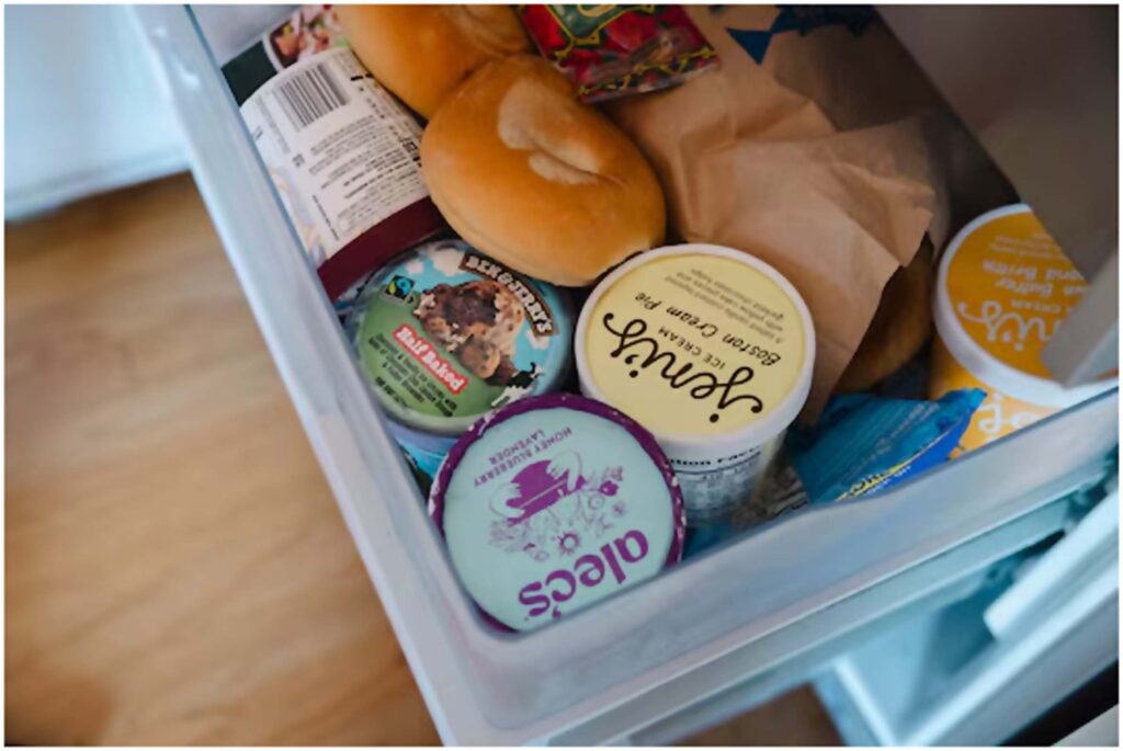 Amanda Hartman still keeps ice cream in her freezer even after losing weight on Wegovy, but she said she doesn’t consume it as quickly, “so my purchase cycle has become a lot longer for these junk foods.” (Taylor Glascock for The Washington Post)